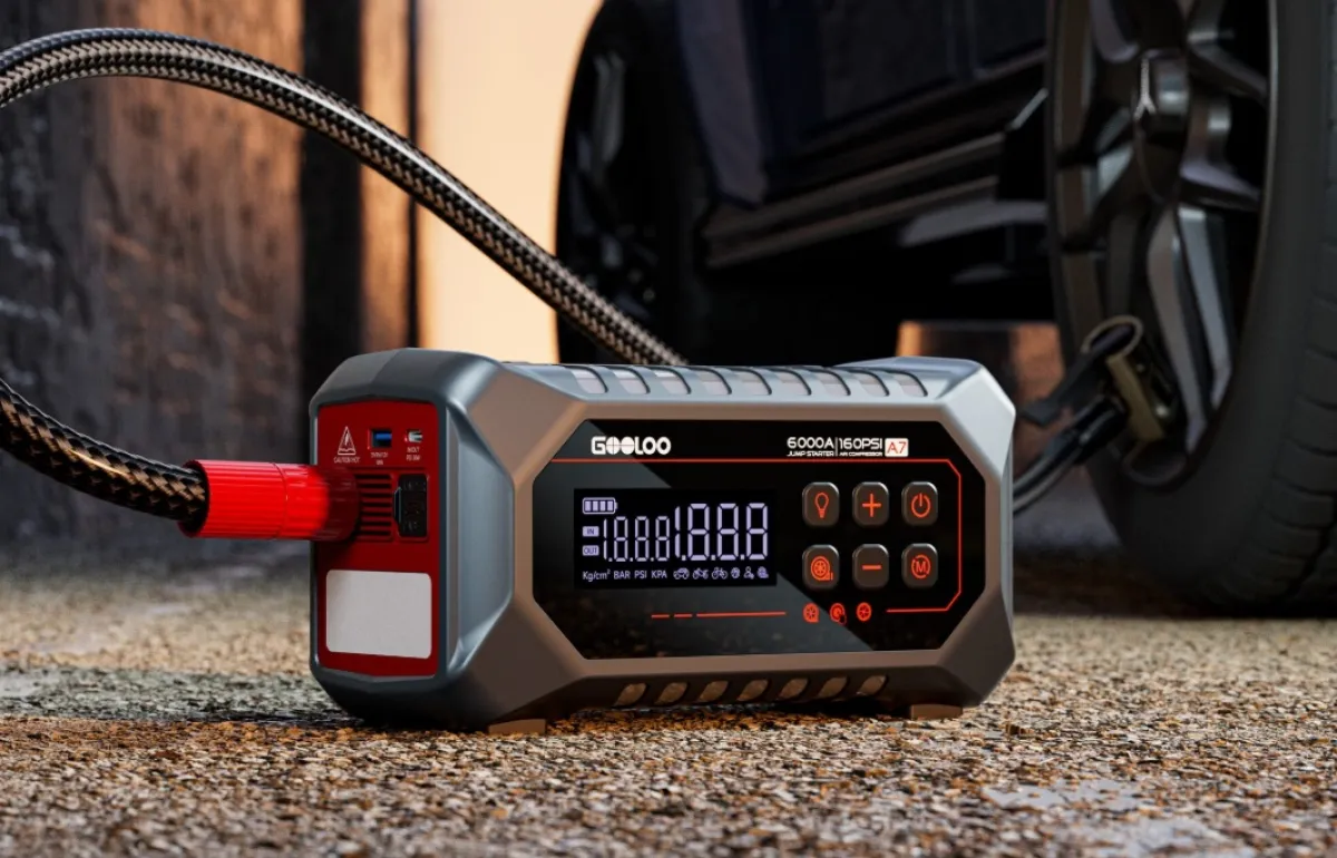 Gooloo A7 сочетает три функции в одном устройстве: аварийный пуск двигателя, зарядку внешних гаджетов и накачку шин. Корпус размером 150,1 × 124,9 × 267,9 мм весит около 14 кг, а встроенный аккумулятор ёмкостью 24 000 мА·ч обеспечивает пиковый ток 6000 А. Пусковое устройство стабильно работает при температуре от -20 до +60 C, позволяя быстро запускать двигатель даже в суровых условиях. Порты USB-C и USB-A позволяют одновременно заряжать два устройства с выходной мощностью 30 Вт и 15 Вт.