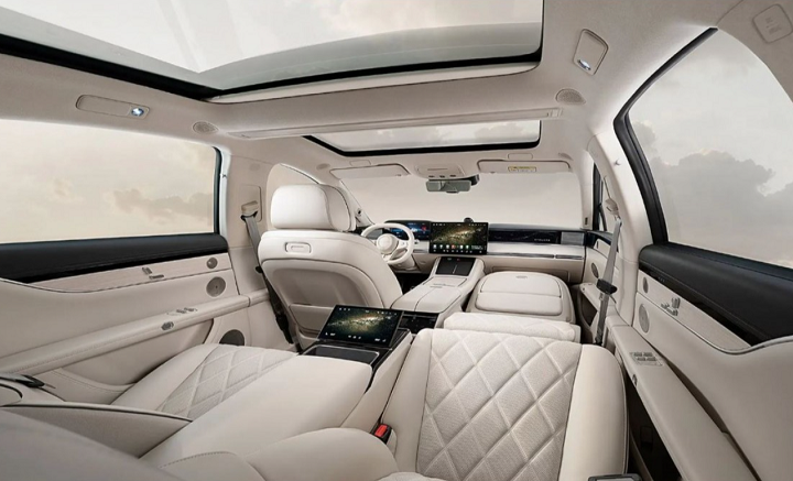 Модель Ultra предлагает сиденья с функцией невесомости и 32-дюймовый проекционный экран, который превращает салон в мобильный развлекательный центр, где пассажиры могут смотреть фильмы в дороге. В автомобиле также установлена платформа Huawei Tuling - голосовой помощник на базе искусственного интеллекта, который реагирует на голосовые команды и управляет различными функциями автомобиля.