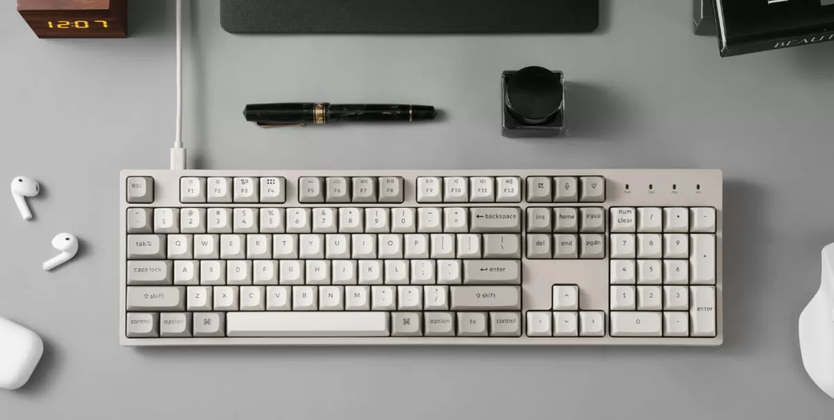 Клавиатура Keychron C2 Pro 8K оснащена полноразмерной раскладкой с выделенным цифровым блоком и навигационными клавишами, что делает её удобной для пользователей, работающих с большими объёмами текста и таблиц. Частота опроса 8000 Гц обеспечивает минимальные задержки ввода — важный фактор как для геймеров, так и для профессионалов, работающих с быстрой печатью.